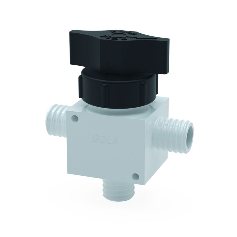 Ball valves with GL screwthread made of chemically resistant PTFE. Maximum permissible atmospheric temperature 150°C, passing media can be as hot as 220°C.