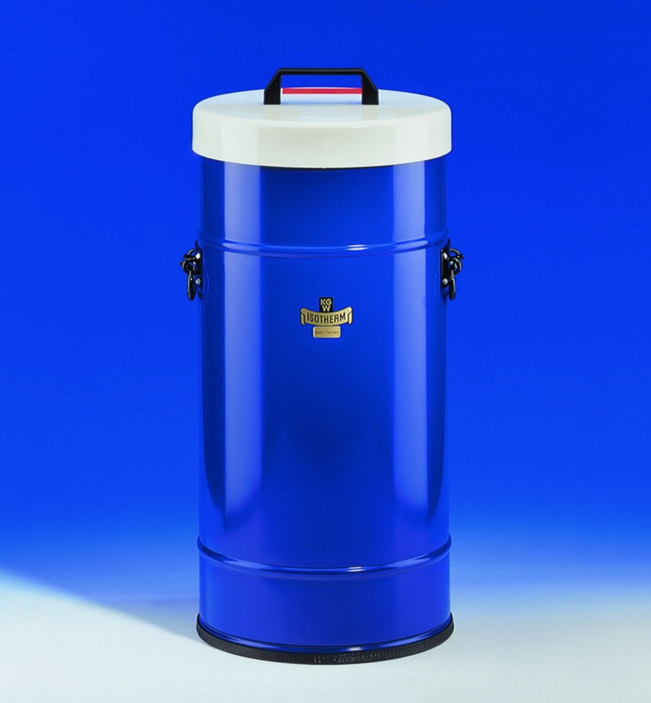 Borosilicate glass 3.3. DIN 16496. Large opening. With insulated lid. For cooling and storage of temperature-sensitive goods e.g. with dry ice (CO2). When storing liquid nitrogen (LN2) a hole (diam. approx. 2 mm) in centre of the lid is necessary.