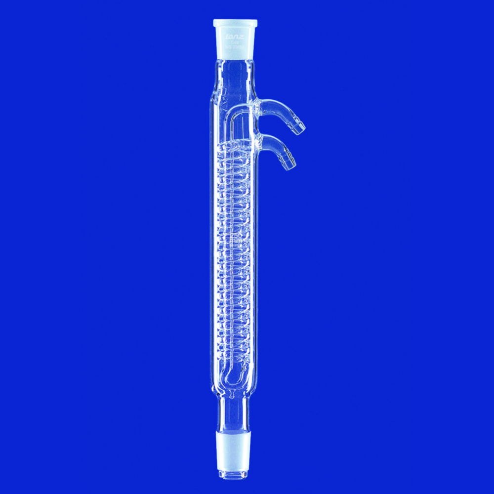 Made of DURAN® tubing. Dimroth condensers acc. to DIN 12591 and in addition to DIN standard, for condensing vapours, with NS socket and cone, water connection: glass olives or GL 14 threads with two threaded plastic olives.