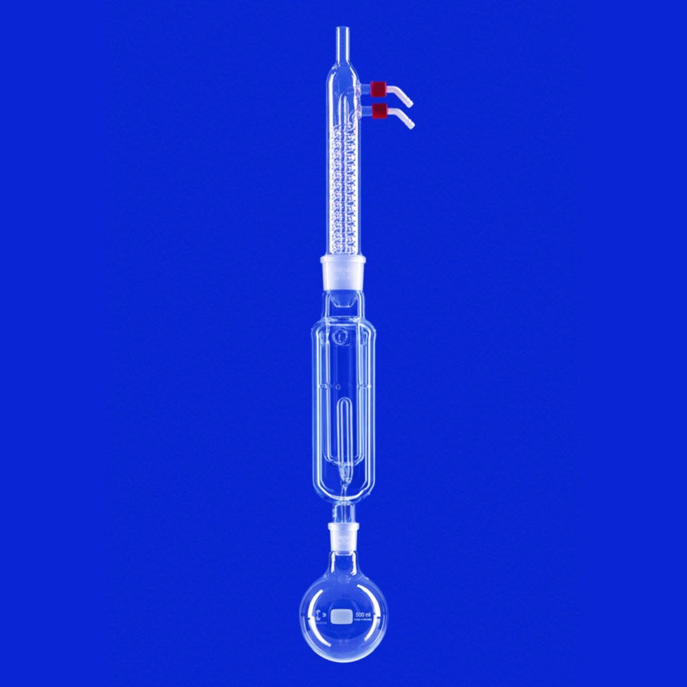 Jacketed extractor head made of DURAN® tubing, Dimroth condenser with thread GL 14, made of DURAN® tubing,