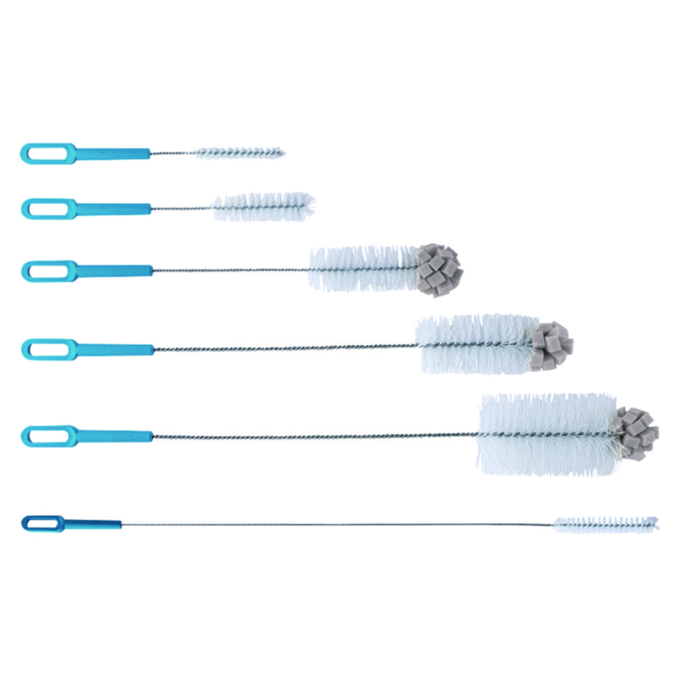 Excellent tools for washing and cleaning of all type of laboratory bottles, flasks, tubes, condensers, burettes, etc. Brush material is manufactured from highest quality of fibre/perlon for long life cycle. Brush stem is manufactured from corrosion proof twisted steel wire. Brush handle is manufactured from polyproylene and offers extreme easy handling and use of the brush. Unique handle design enables hanging of the brush to a convenient place for easy reach. Spherical sponge top part enables access to every corner of the labware and guarantees perfect cleaning results.