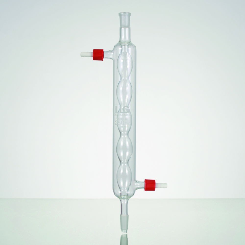For condensing vapours. Water connection with PP olives. With standard ground cone and socket. Acc. to DIN 12581.