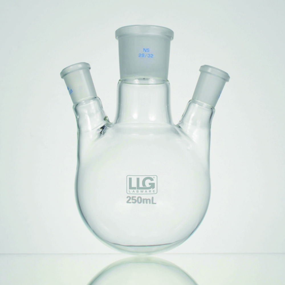 LLG-Three-neck round bottom flasks with standard ground joint, borosilicate glass 3.3, angled side necks