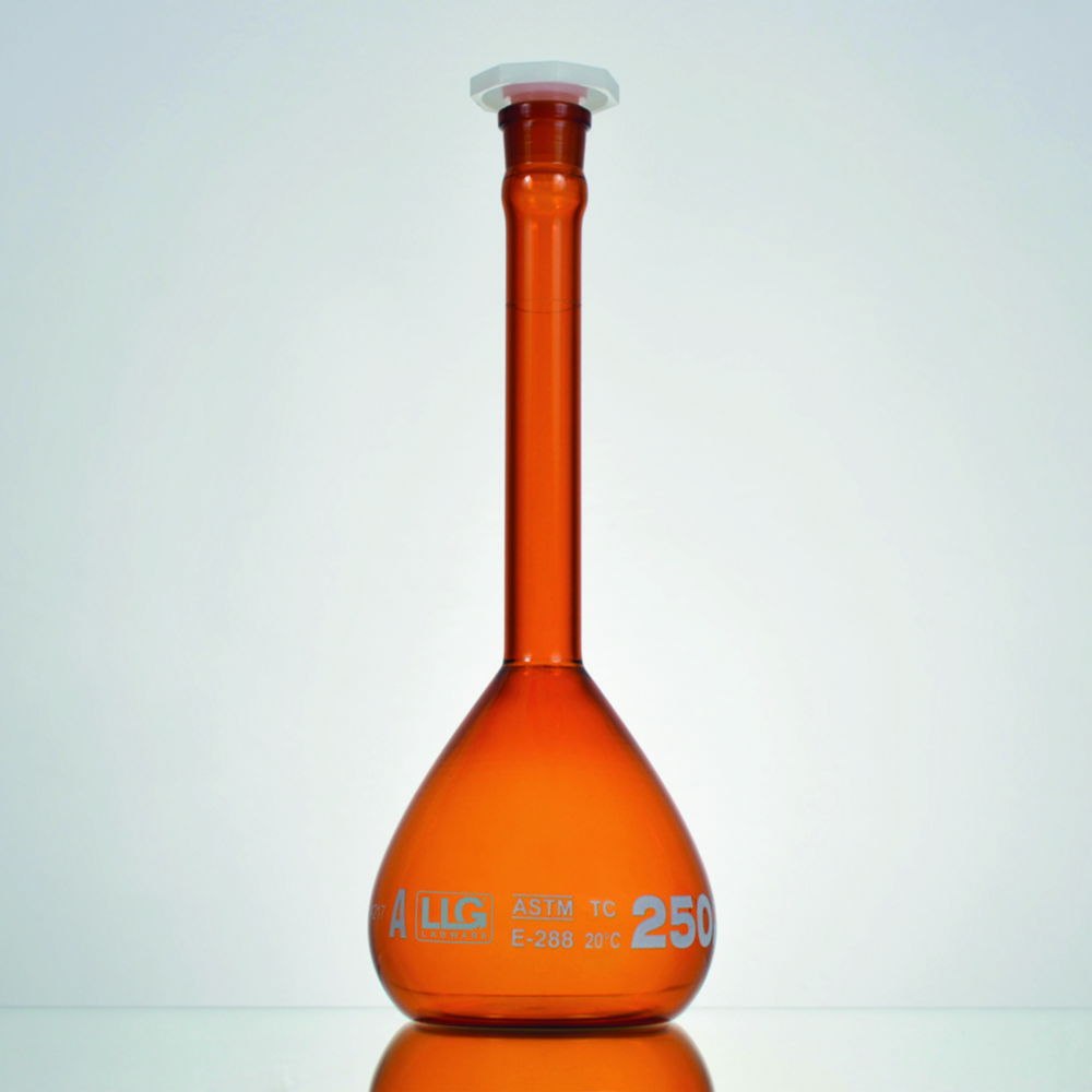 LLG-Volumetric flasks, borosilicate glass 3.3, class A, amber glass