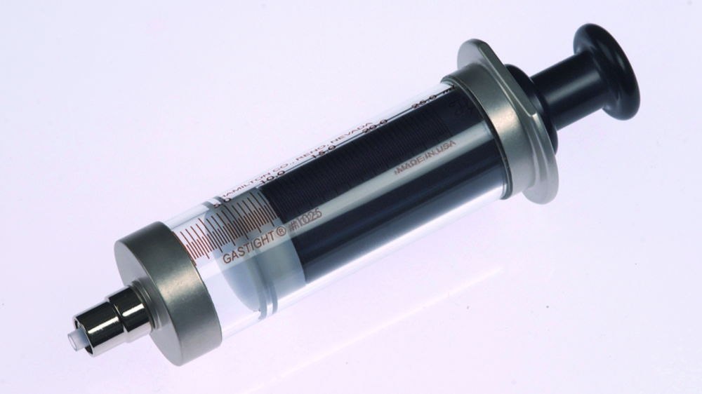 LiituPTFE-coated plunger and seal, and Luer lock outlet. Gas-tight microlitre syringe without needle.