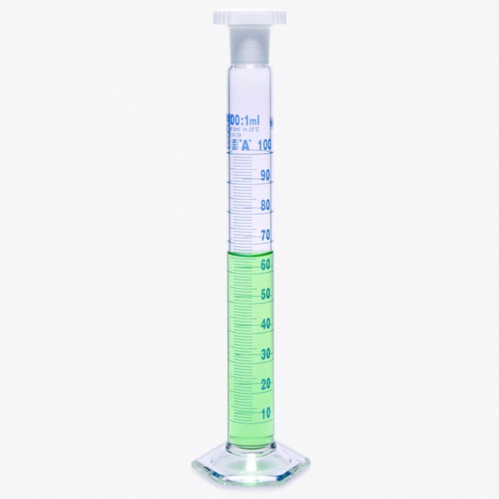 Mixing cylinders, borosilicate glass 3.3, tall form, class A, blue graduated