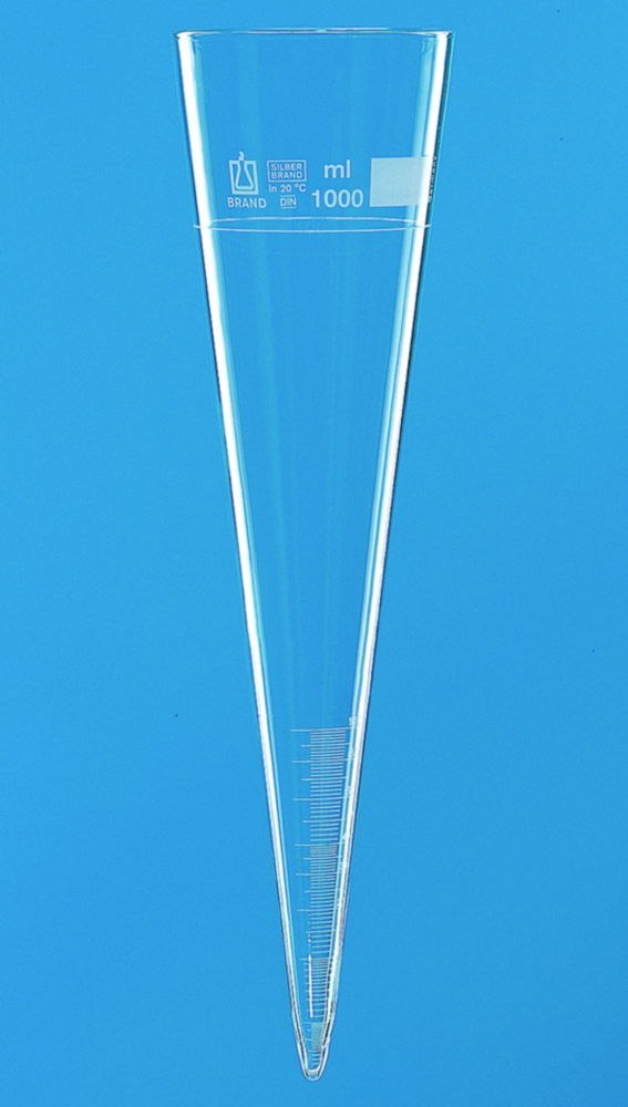 Imhoff pattern. DIN 12672. Graduations and inscriptions in contrasting white enamel. Ring mark at 1000ml.