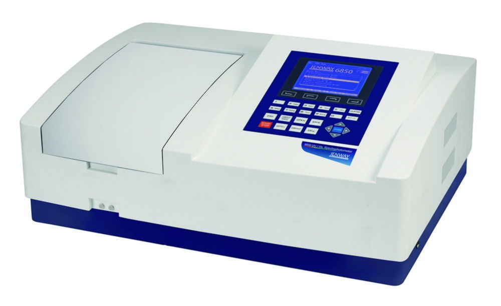 Double beam spectrophotometer with a variable spectral bandwidth. The highly stable optics and two detectors measure the sample and reference simultaneously optimising measurement accuracy. The 6850 has measurement modes for photometrics, concentration, multi-wavelength, spectrum scanning, kinetics, quantitation, DNA/RNA and protein analysis. Jenway Prism PC software is supplied as standard and offers additional functionality with preloaded methods for DNA/RNA and protein analysis, as well as extensive post-measurement tools, unlimited results saving and easy export of data. The 6850 double beam spectrophotometer is ideal for quality control, general research, pharmaceutical, biochemical and clinical laboratory applications. Installation Qualification and Operation Qualification (IQ/OQ) is available for the 6850.