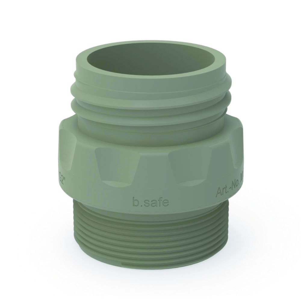 The adapters for caps and waste caps have two male threads and recessed grips for easy mounting.